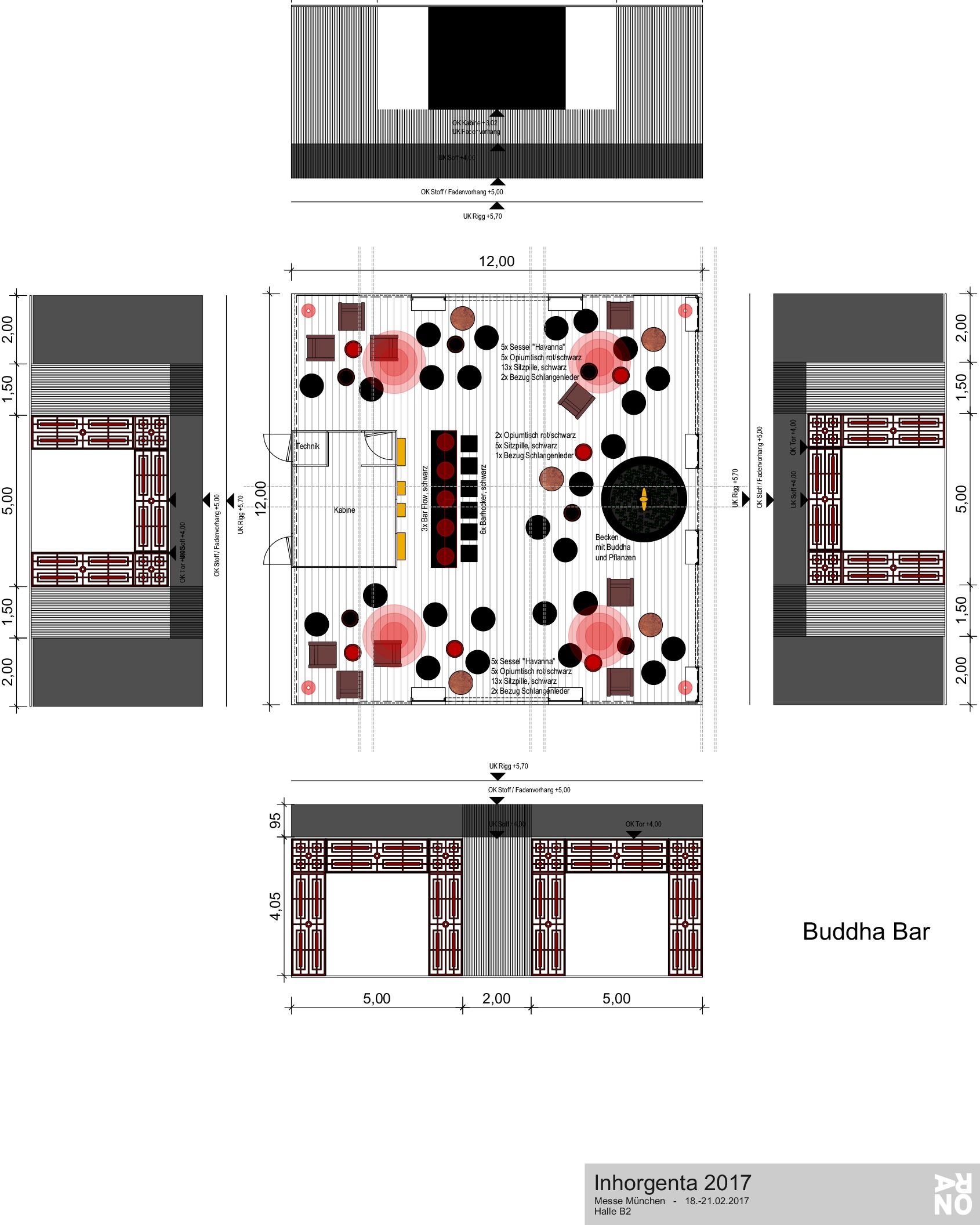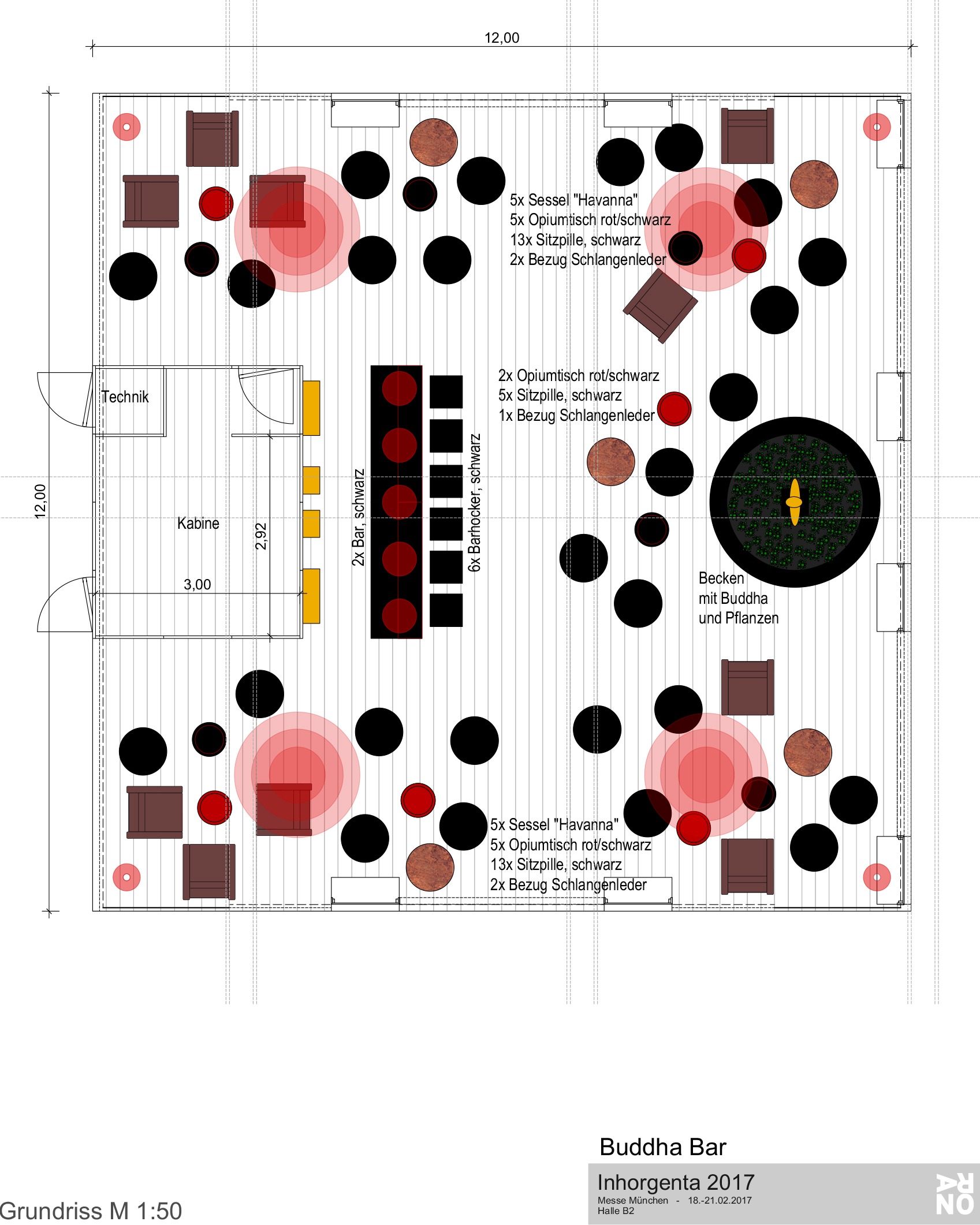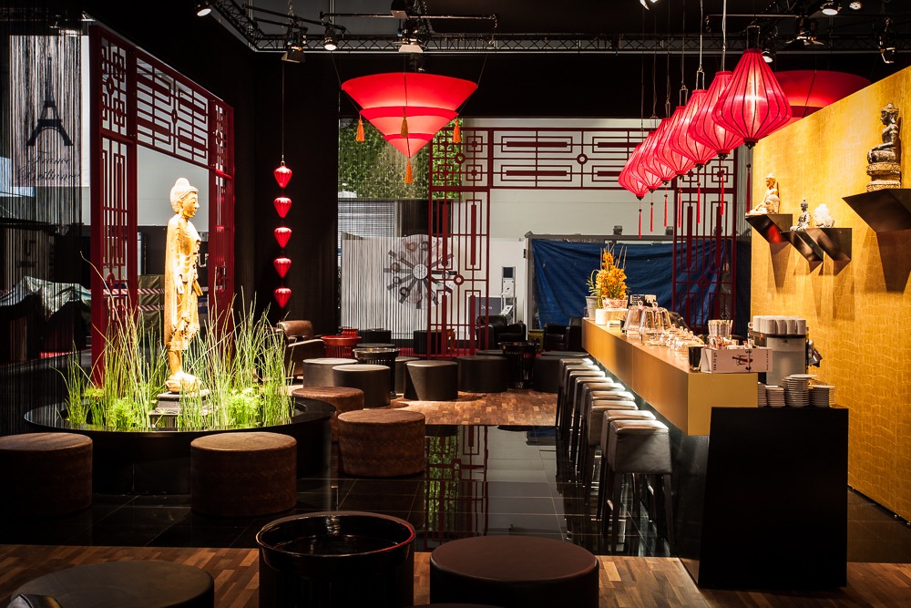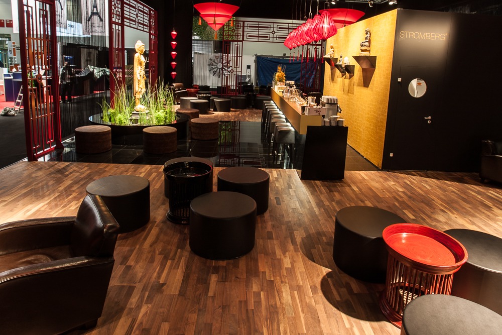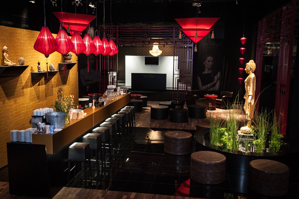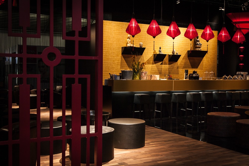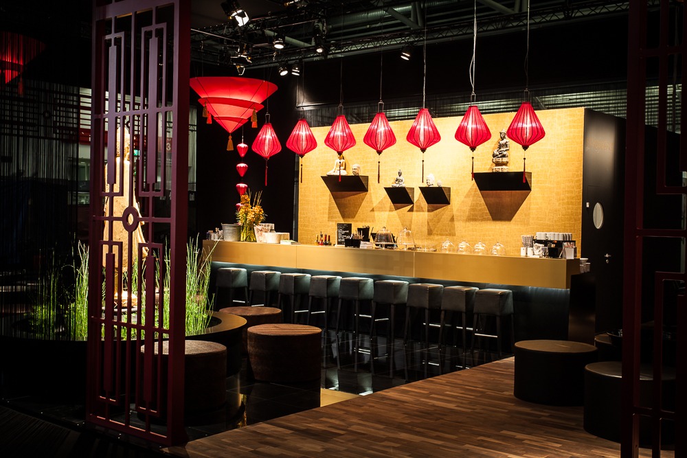 Positive Energie und Entspannung bietet unsere Buddha Bar den Messebesuchern. Ein Kurztrip nach Asien mitten im Messetrubel. Diese Lounge kann je nach Sponsor, CI-konform angepasst werden.