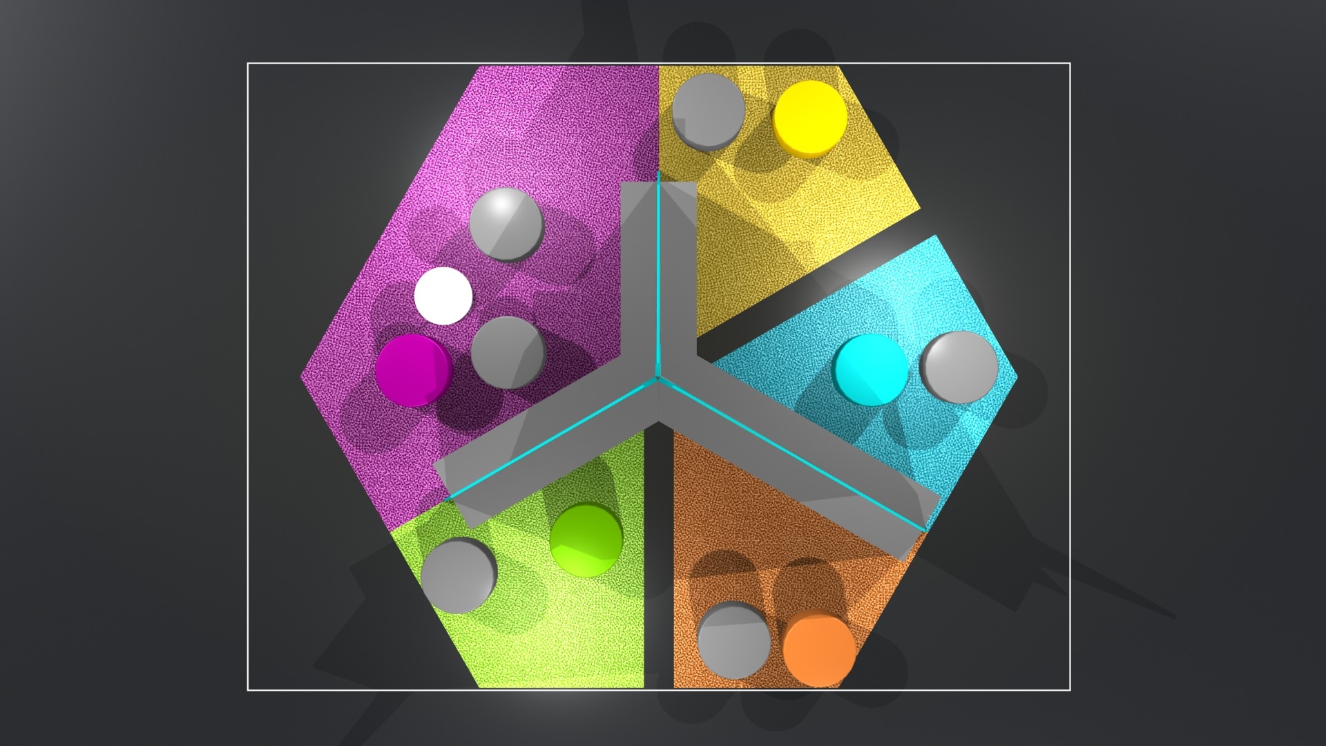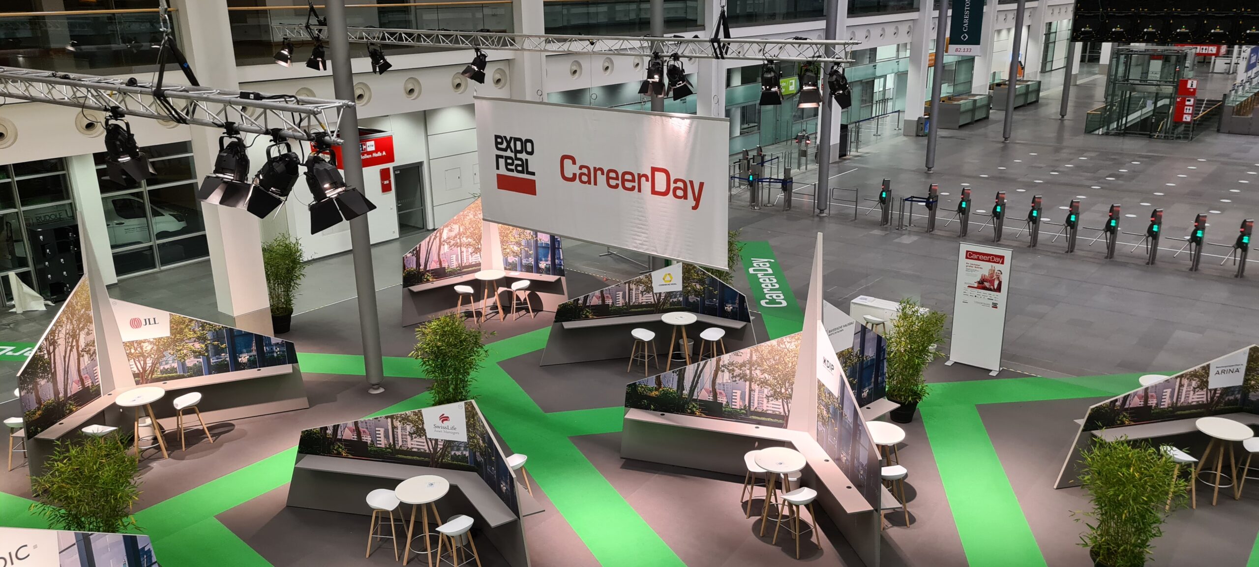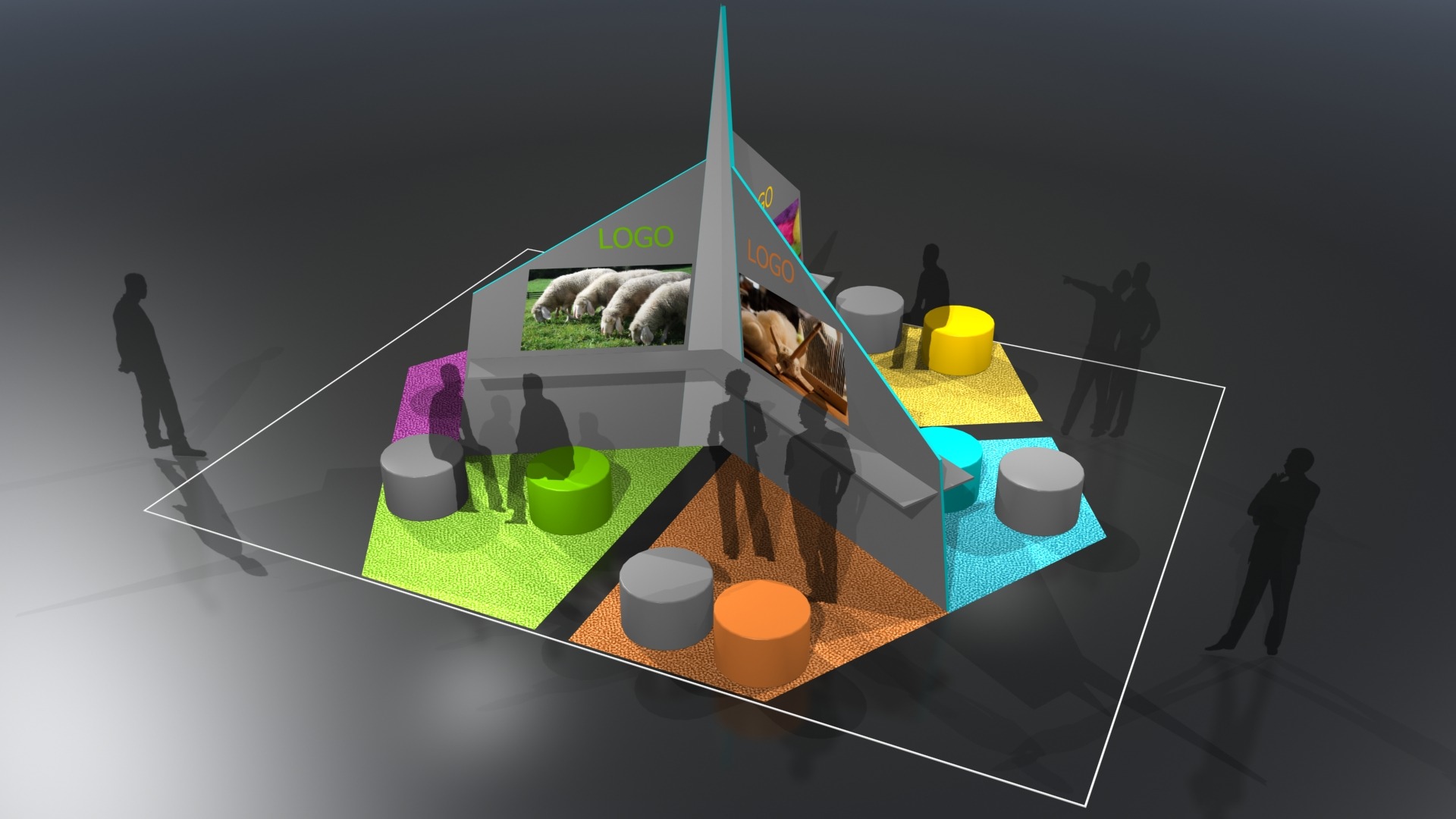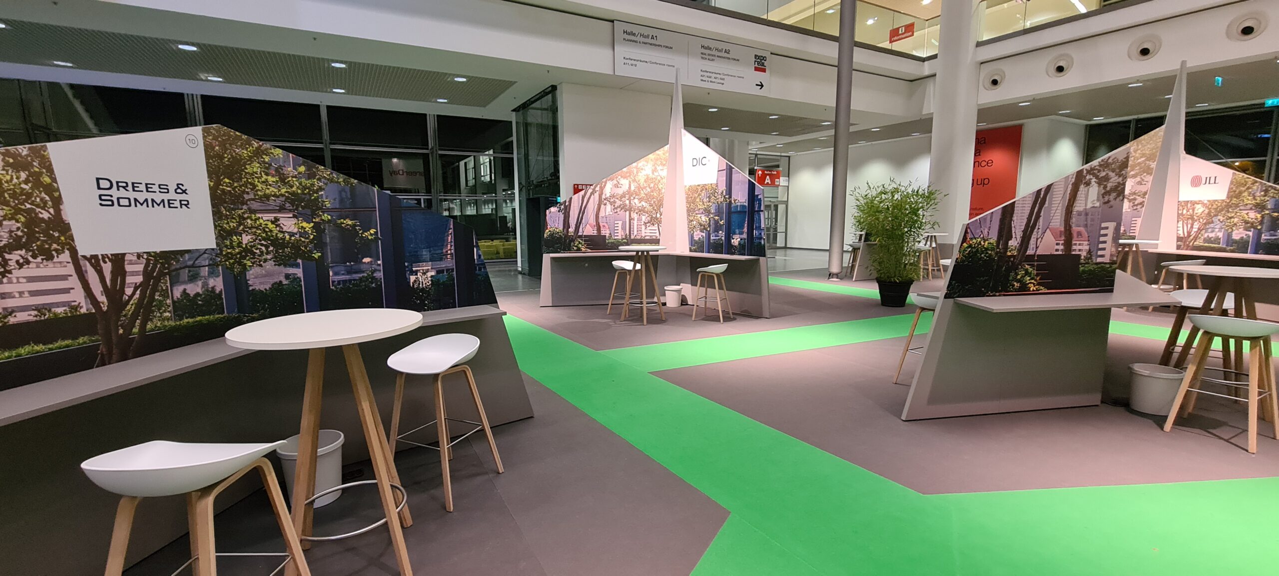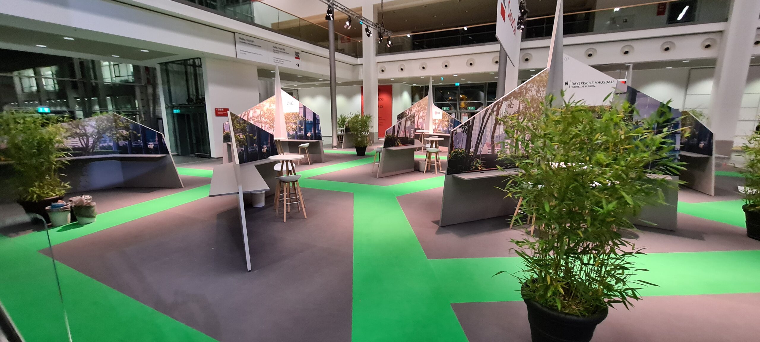 Die sternförmigen Module können beliebig gruppiert und erweitert oder als Einzelelemente von 3 bis 6 Ausstellern genutzt werden. Jede Ausstellungsfläche kann durch individuelle Grafik und Farbgestaltung sehr einfach an den jeweiligen Nutzer angepasst werden.