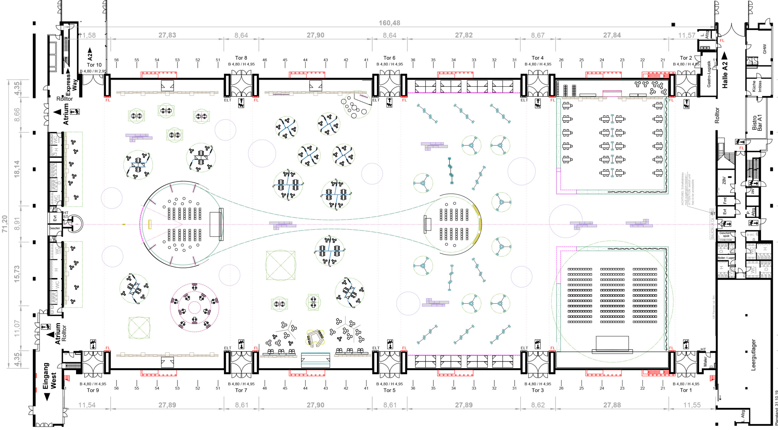 Das flexible Hallenkonzept basiert auf drei Säulen: Ausstellerbereich/ Informationsbereich/ Networkingbereich. Das perfekte Umfeld für die Kombination von etablierten Unternehmen und Start Ups in Dialogforen, Lounges und Themenbereichen. Das modulare und für jede Ausstellergruppe individuell angepasste Design bietet eine attraktive Plattform für die Präsentation und Diskussion innovativer Konzepte. Ein Marktplatz für Ideen, Firmen und Investoren.